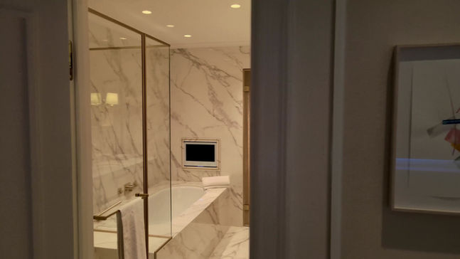 Als eine der feinsten Adressen überhaupt, zeigt sich das Hotel Vier Jahreszeiten nun mit der völlig neu gestalteten Präsidentensuite von seiner schönsten Seite. Wir als Partner im Glasbereich konnten bei diesem herausragenden Projekt viele besondere Glasanwendungen mit entwickeln und verbauen. So wird im Hauptbadezimmer mit ganz individuell gefertigten Spiegeln, einer Glastür mit Metallgeflecht-Einlagen und einer einmaligen Duschanlage in Messing-Optik die Kompetenz vom Ahrensburger Glasbau direkt erkennbar.