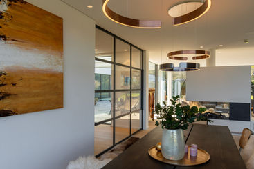 Eine weitere schöne Referenz mit vielen großflächigen Glasanwendungen und Sonderlösungen in einer sehr modernen Flachdachvilla. Dabei wurden alle Sprossen-Türelemente so konstruiert, dass diese ganz dezent in Wandtaschen verschwinden können. Gerade bei der großen Schiebetüranlage zwischen Koch- und Wohnbereich steht man bei der Bedienung der Tür staunend davor. Durch die hauseigene Metallbau-Produktion können die Anzahl und das Design der Sprossen-Elemente ganz nach Wunsch und Designanspruch variiert werden.